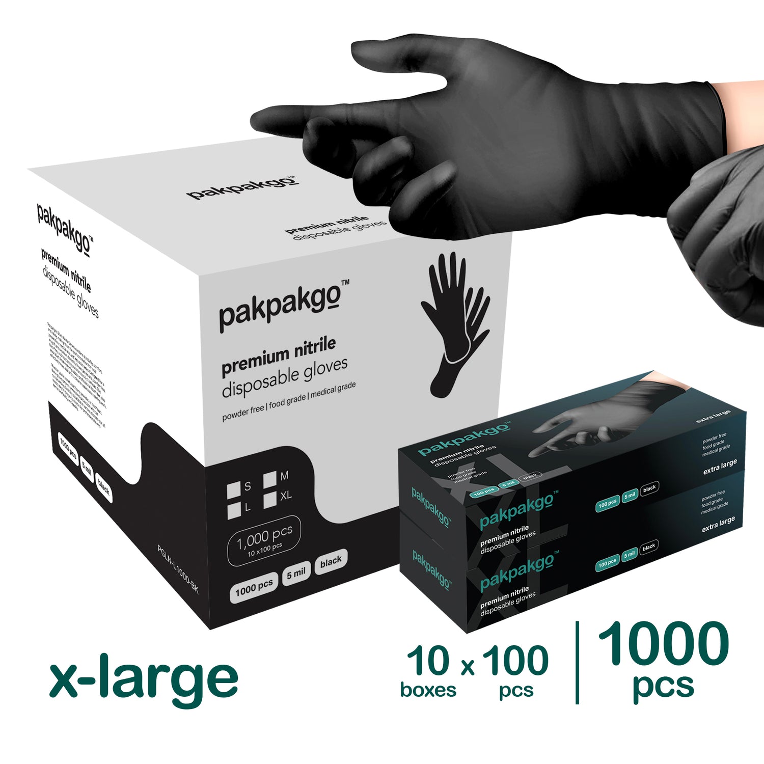 Bulk Pack X-Large Black Nitrile Gloves, 1000 pcs