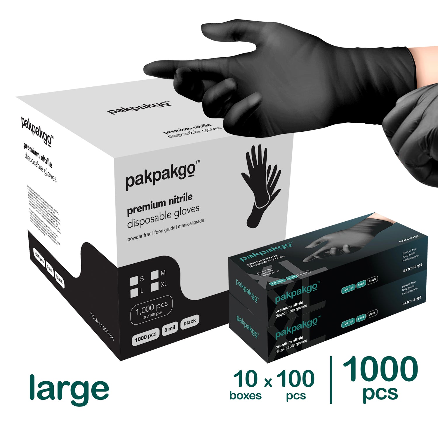Bulk Pack Large Black Nitrile Gloves, 1000 pcs