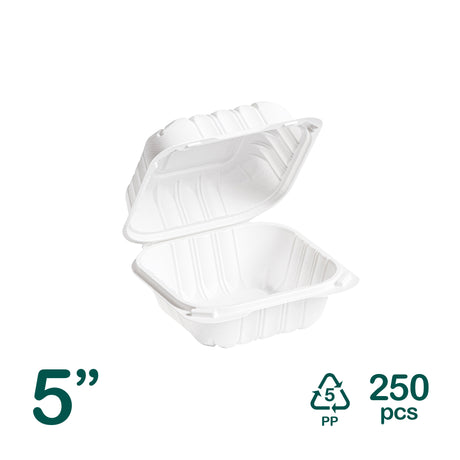 Frequent Buyer Program. ↙5 inch Plastic MFPP Hinged Clamshell Containers, 250 pcs