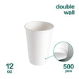 Double Wall White 12oz Paper Cups, 500pcs